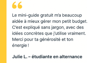 Ces avis sont là pour te montrer que c’est possible de reprendre le contrôle sur ses dépenses et de faire des économies, même en partant de zéro. Si tu veux me partager ton expérience ou ton avis, tu peux aussi remplir le formulaire en bas de page.