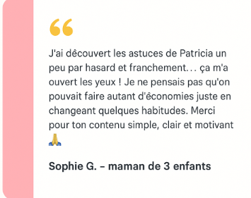 Depuis que je partage mes bons plans et astuces pour économiser au quotidien, j’ai eu la chance de recevoir de nombreux retours positifs.